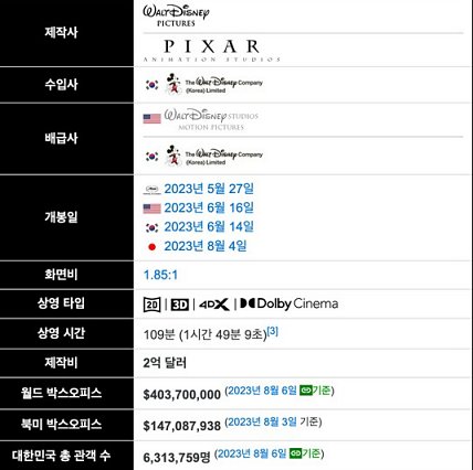 불 원소들이 사는 지역 파이어타운이 차이나타운, 코리아타운 같은 느낌이 강하게 들기도 하고 뜨거운 음식들, 절, 공동체를 중시하는 문화가 한국인 관객들에게 더 살갑게 다가온다는 평이 많은데 나도 그렇게 느꼈던 것 같다. 영화관에서 봐서 다행이라는 생각이 들 만큼 꽤나 재미있게 봤다. 영화 '엘리멘탈'을 보지 않았다고 한다면 꼭 한번 보는 것을 추천한다.
