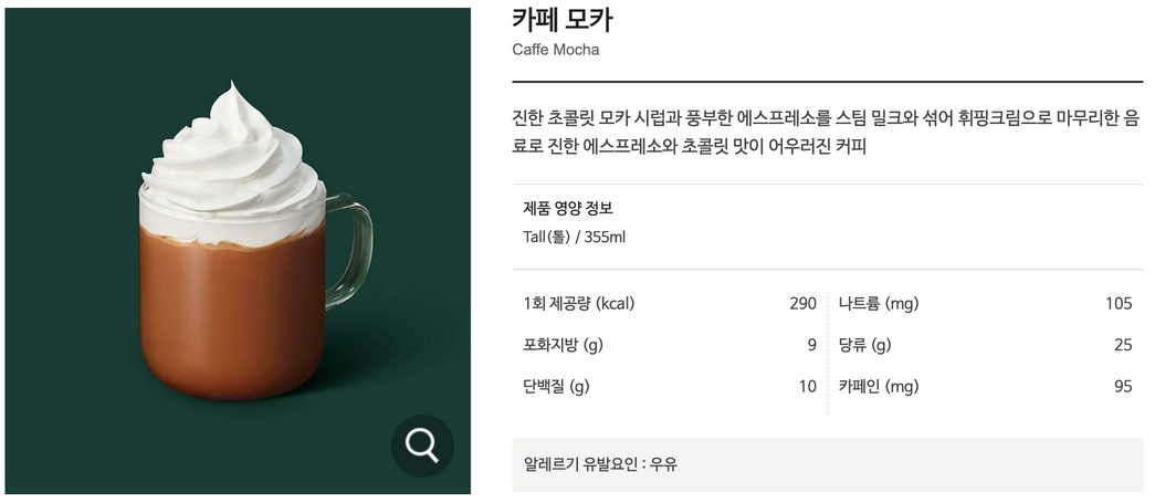 💡 모든 음료 주문 시 ‘시럽 빼기’, ‘무지방 우유’, ‘저지방 우유’, ‘아몬드밀크’ 변경 가능!